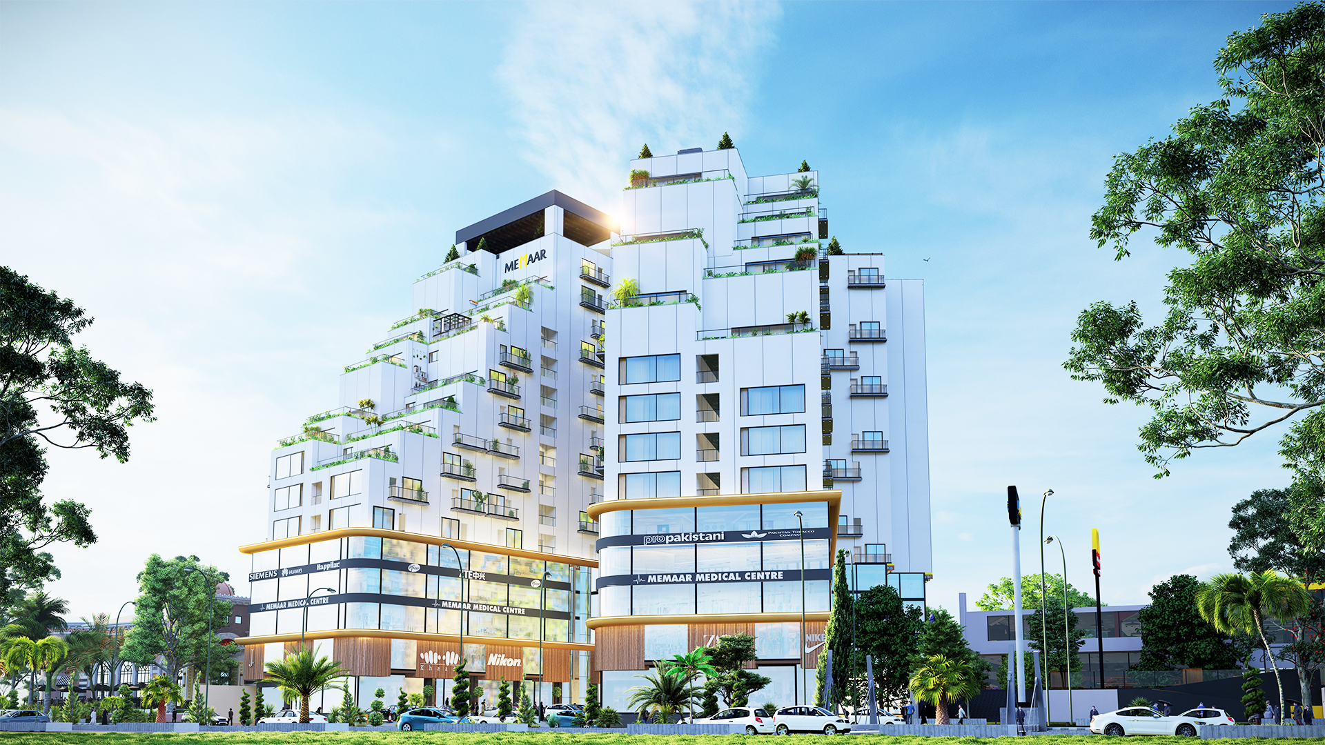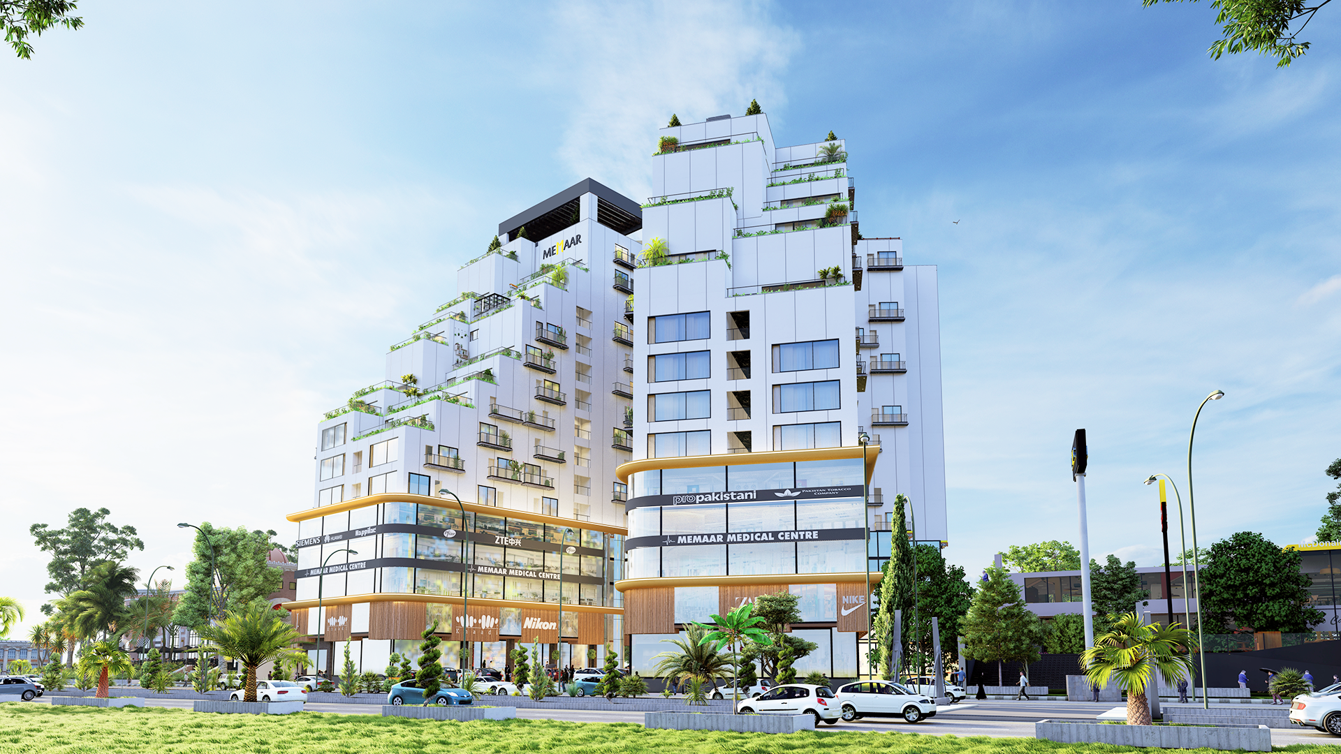 Discover the epitome of urban living at Qasr e Memaar, Peshawar’s premier mixed-use commercial complex. Nestled conveniently opposite Naseer Teaching Hospital on Nasir Bagh Road, this flagship project offers a unique blend of branded shops, state-of-the-art clinics, contemporary apartments, and luxurious penthouses.  Elevate your lifestyle with our flexible and affordable installment plans, providing the key to a prime location in the city’s heart. Whether you are seeking a thriving business space or a modern residence, Qasr e Memaar caters to your every need. Experience the perfect fusion of convenience and sophistication with the Qasr e Memaar real estate project. Your ideal living and business destination awaits; seize the opportunity for a superior life in Peshawar.